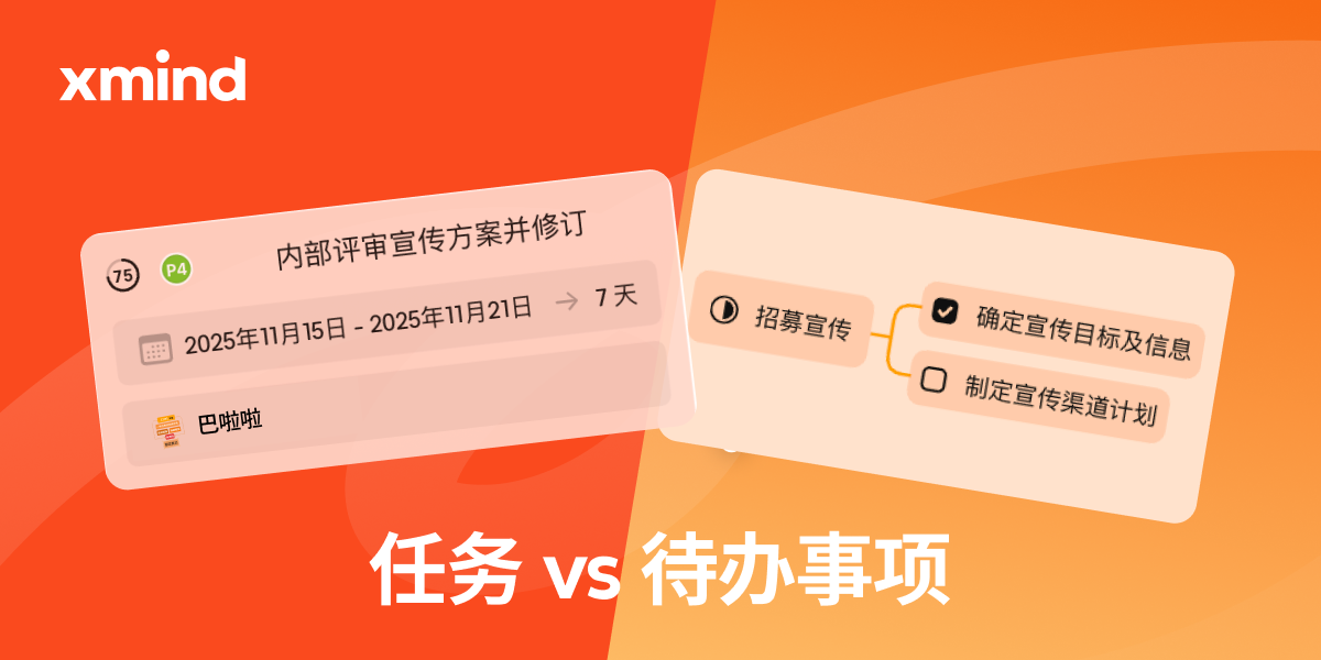 全面解析 Xmind 中「待办事项」与「任务」的差异与适用场景,帮助你在日常记录到项目规划之间自由切换,实现更轻量、更高效、更直观的工作方式。