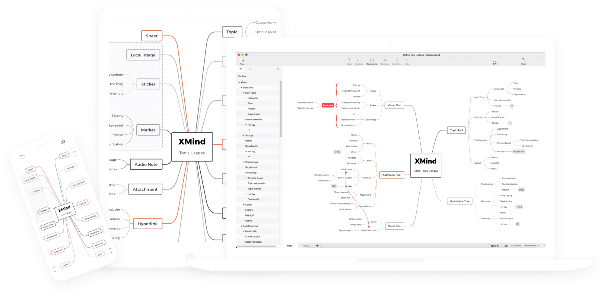 而且,当你的逻辑层次比较复杂时,XMind 还可以支持混用以上的各种结构。