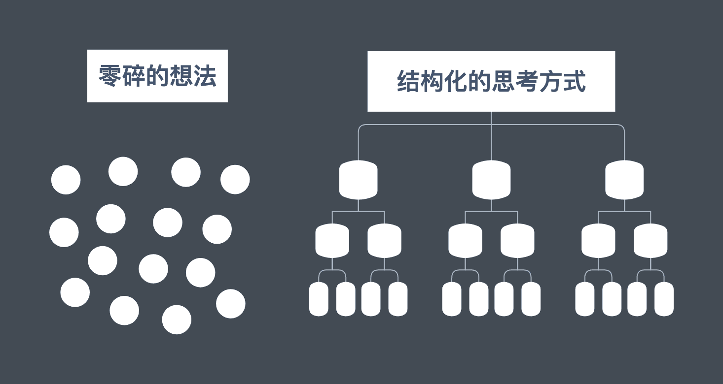 先发散,后总结。用这种方式思考,不仅更容易找到逻辑结构,也更容易培养你的结构化思维。
