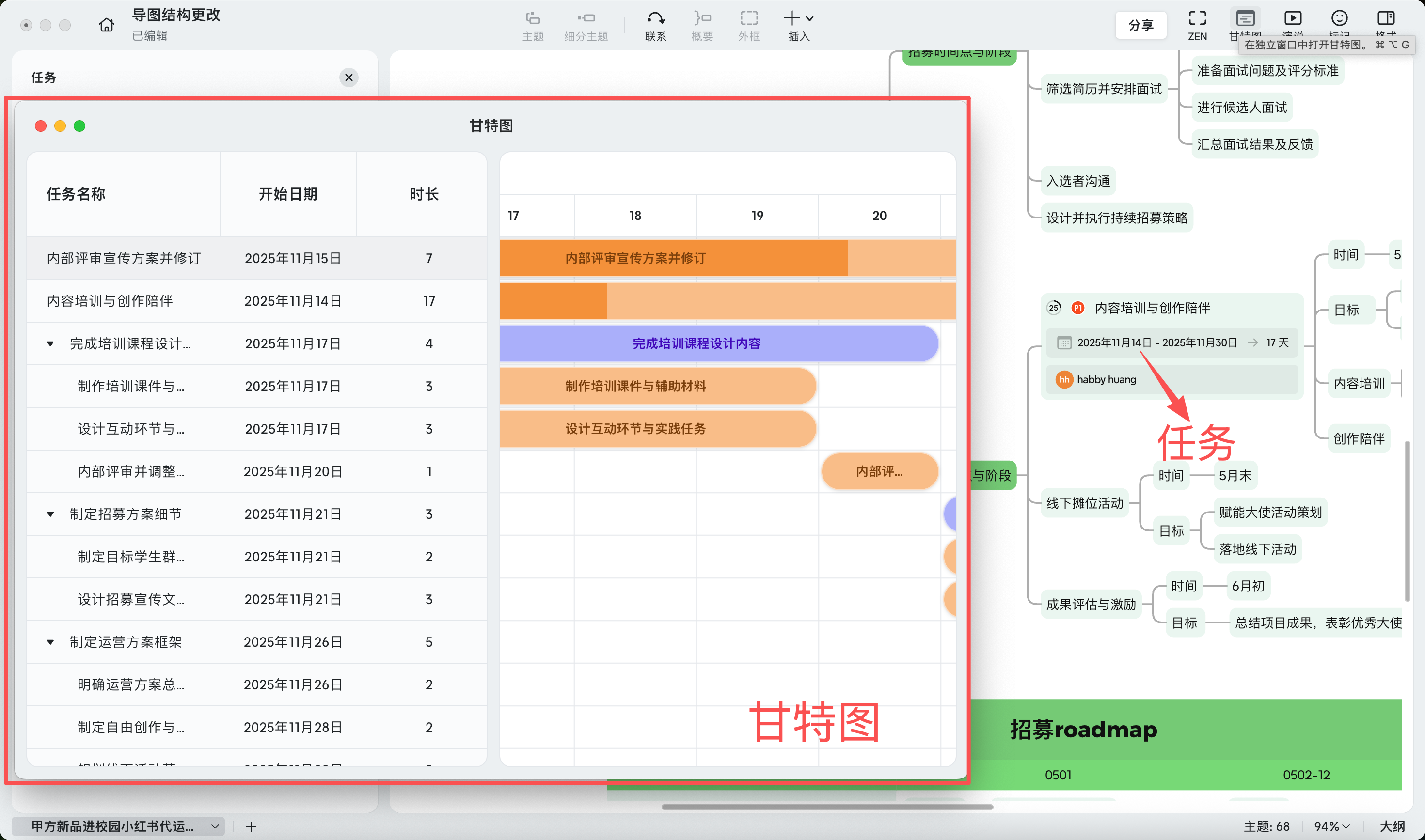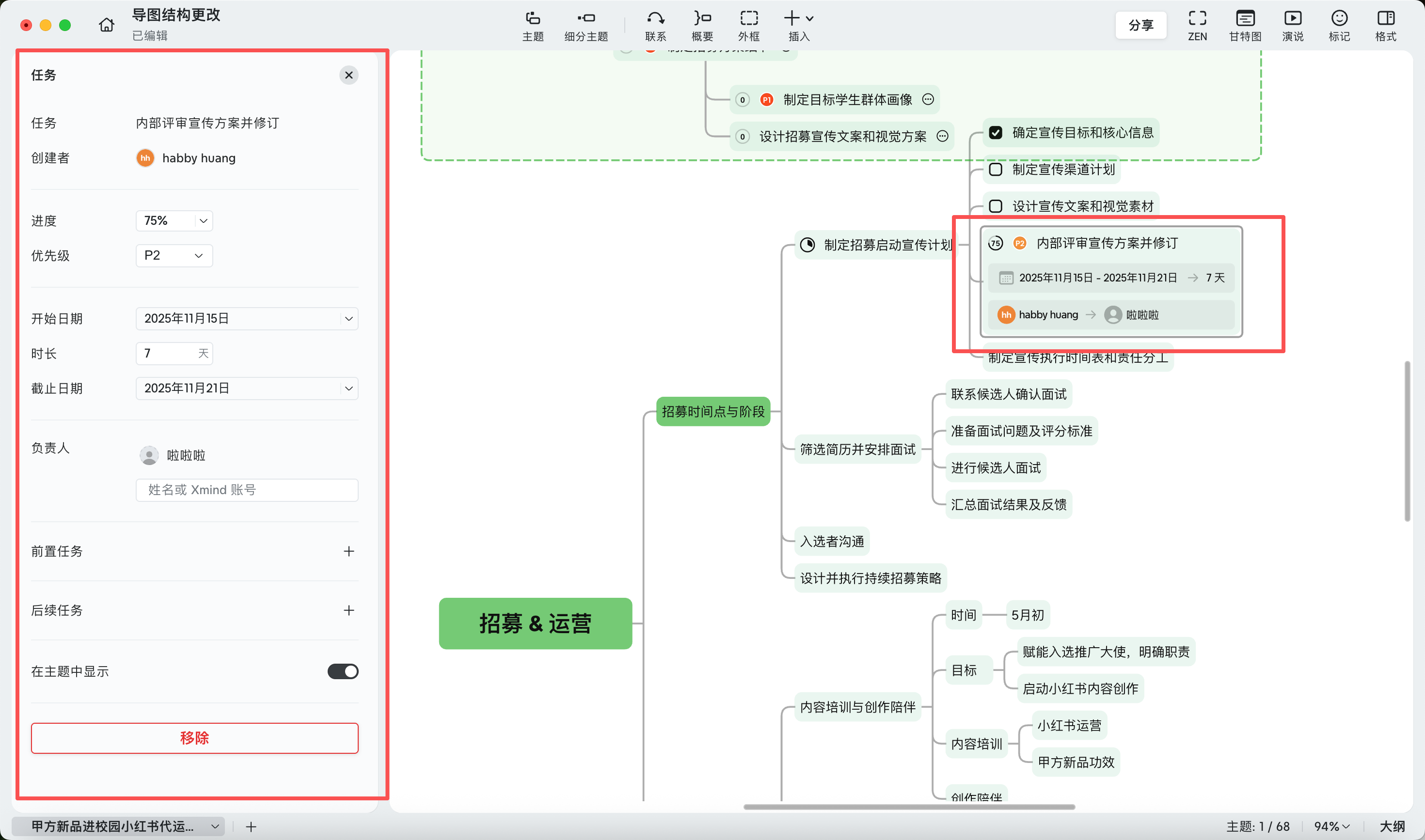 - 在思维导图中直观查看进度