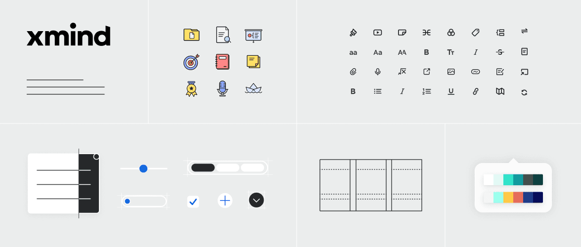 Xmind 的 UI Kit 包括 Xmind 设计的组件、模板、字体、贴纸等组成 Xmind 桌面版 UI 设计的各个元素。你可以点击 Xmind 桌面版 UI Kit 获取以上的所有资源。
