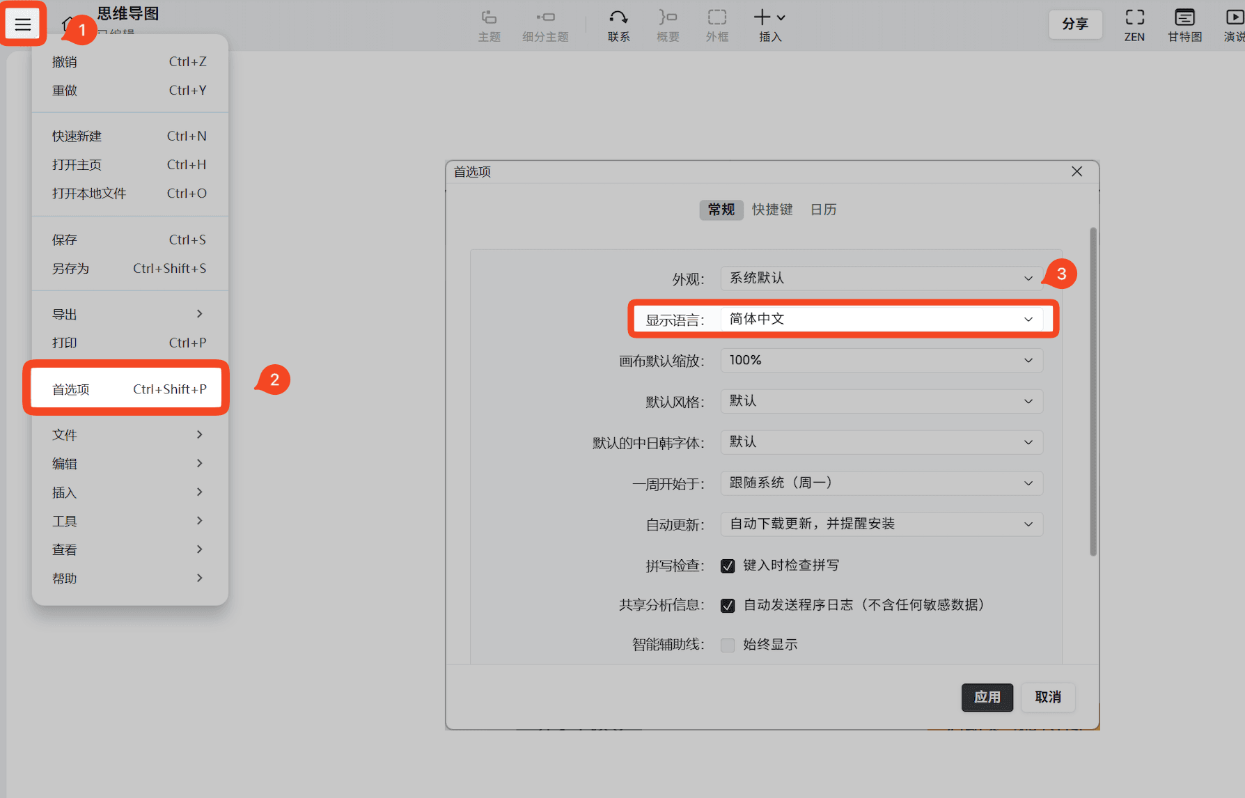 Xmind 支持 14 种语言:英语、简体中文、繁体中文、德语、法语、日语、西班牙语、印尼语、意大利语、韩语、葡萄牙语、泰语、俄语、哈萨克语。