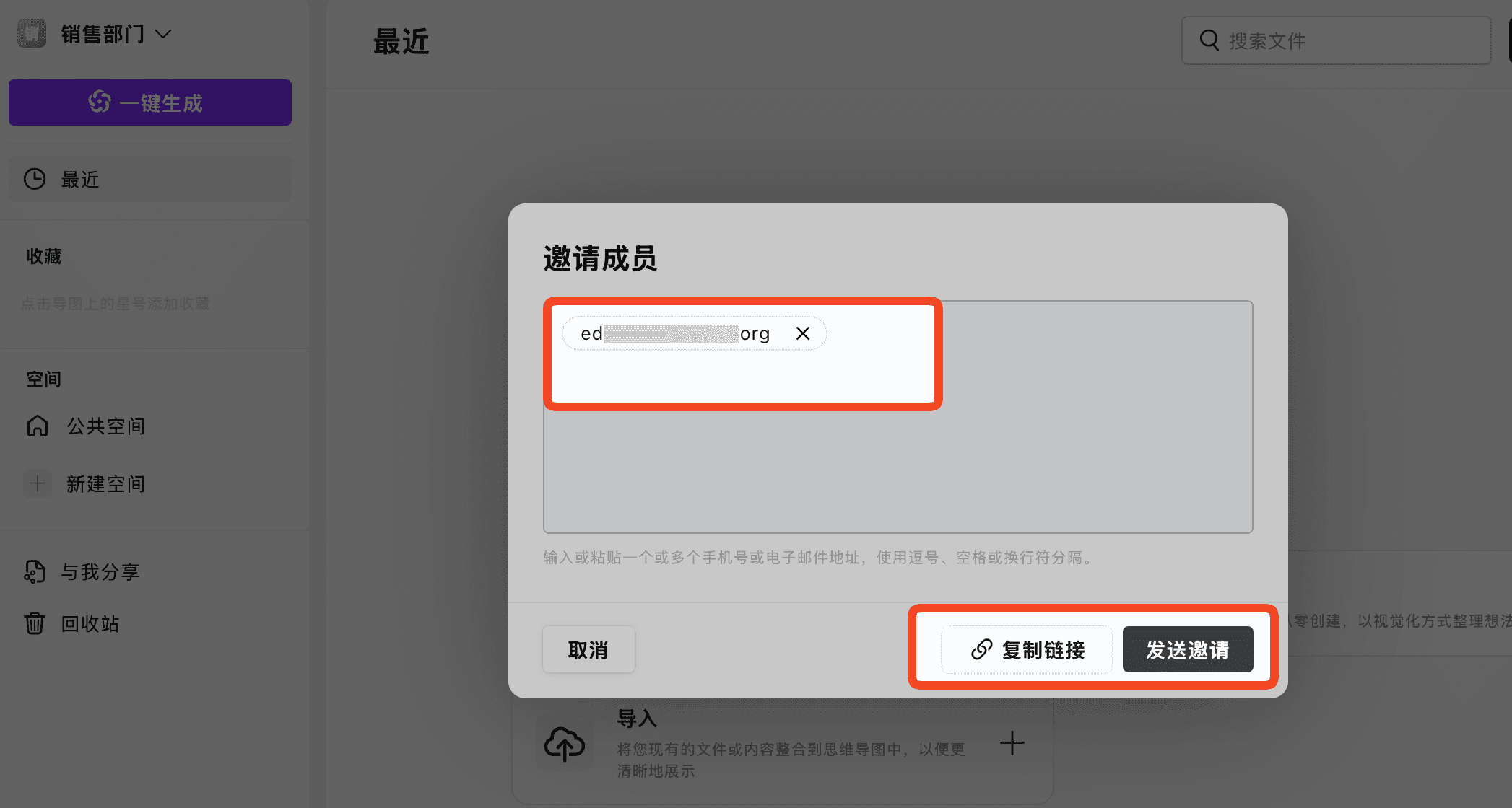 为什么邀请成员或分享导图的时候,会提示“部分邀请未成功发送?