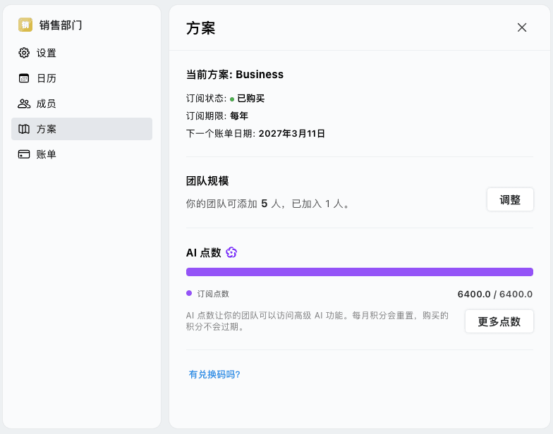 如有需要,可通过 AI 加量包 为团队购买额外的 AI 点数