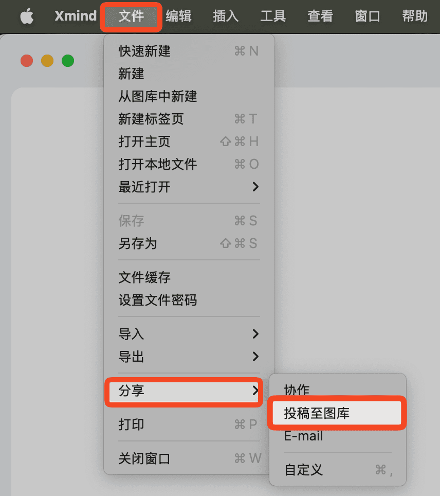 在菜单栏选择 文件 → 分享 → 投稿至图库。