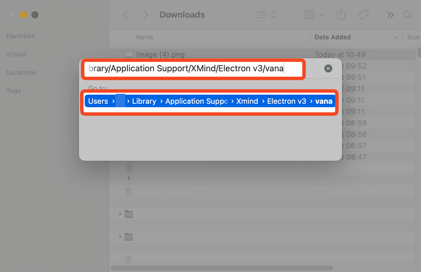 如果您是从 Xmind 官网下载,请输入: ~/Library/Application Support/XMind/Electron v3/vana