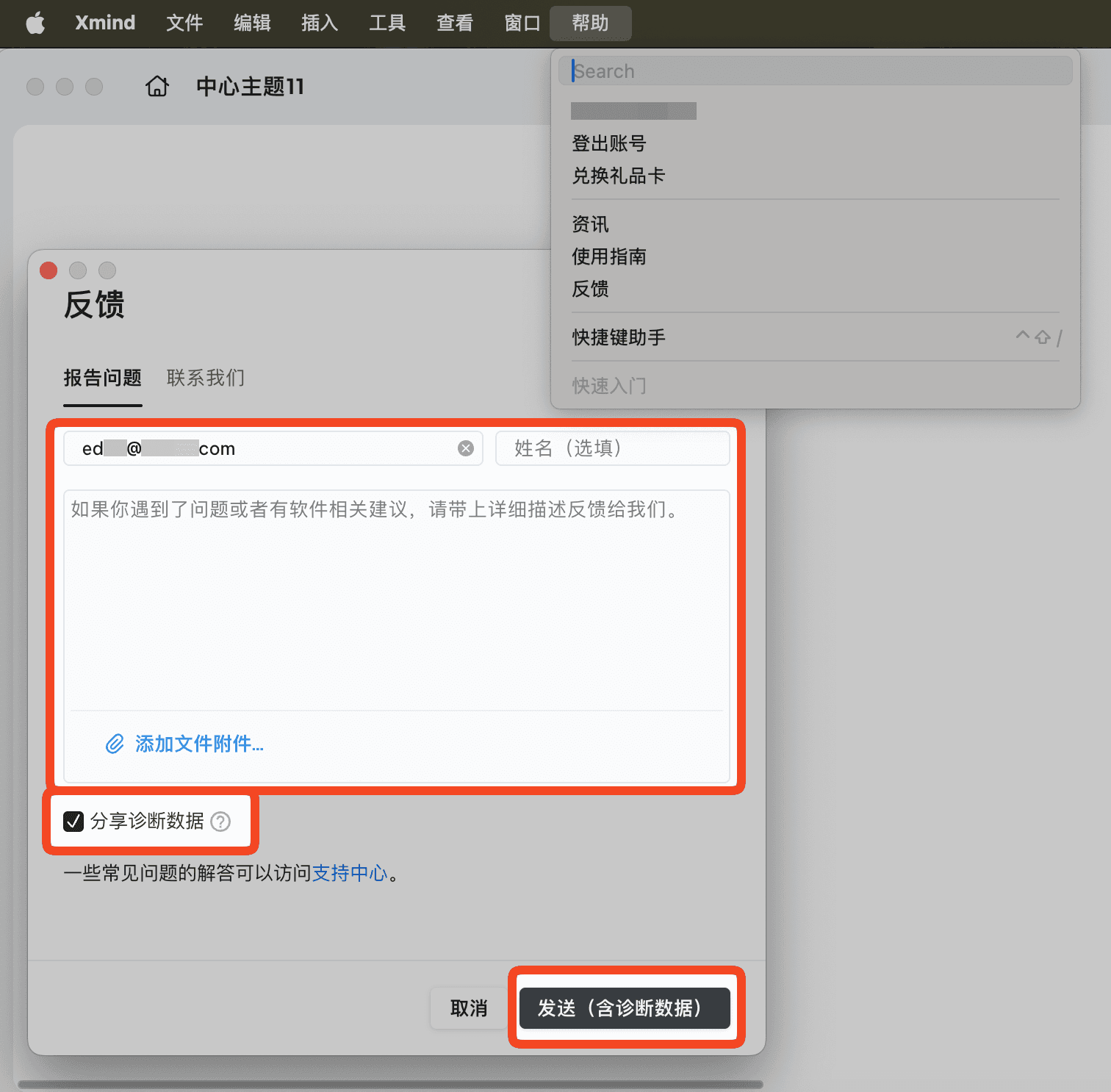 如果您在使用 Xmind 时遇到问题,建议直接通过应用内提交反馈,这样我们可以获取诊断数据,从而更准确地定位问题。