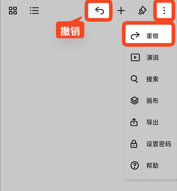 重做 (Redo):点击右上角 「⋮」→ 重做。
