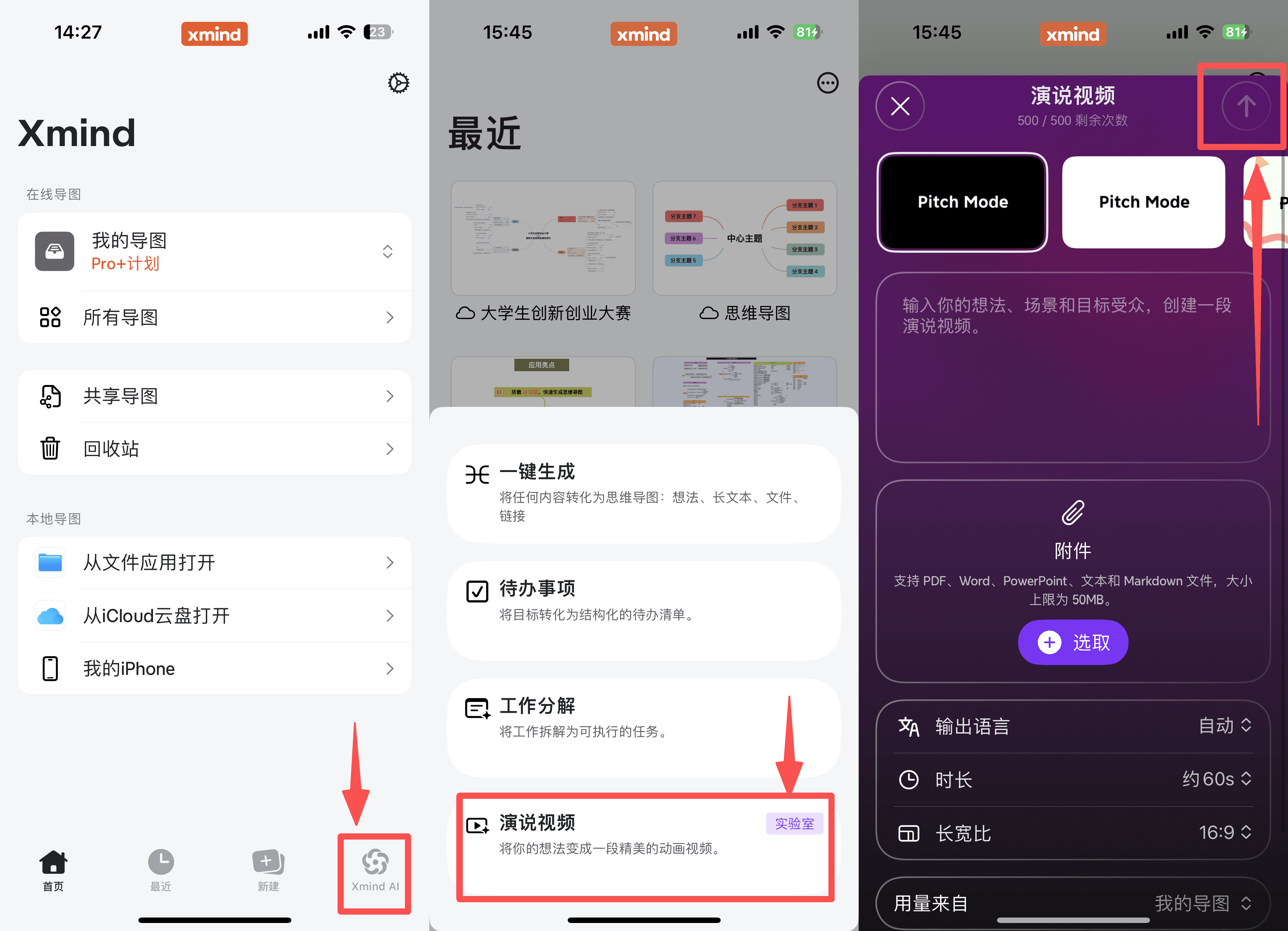 1️⃣ 打开Xmind,点击右下角的「Xmind AI」,选择「演说视频」
