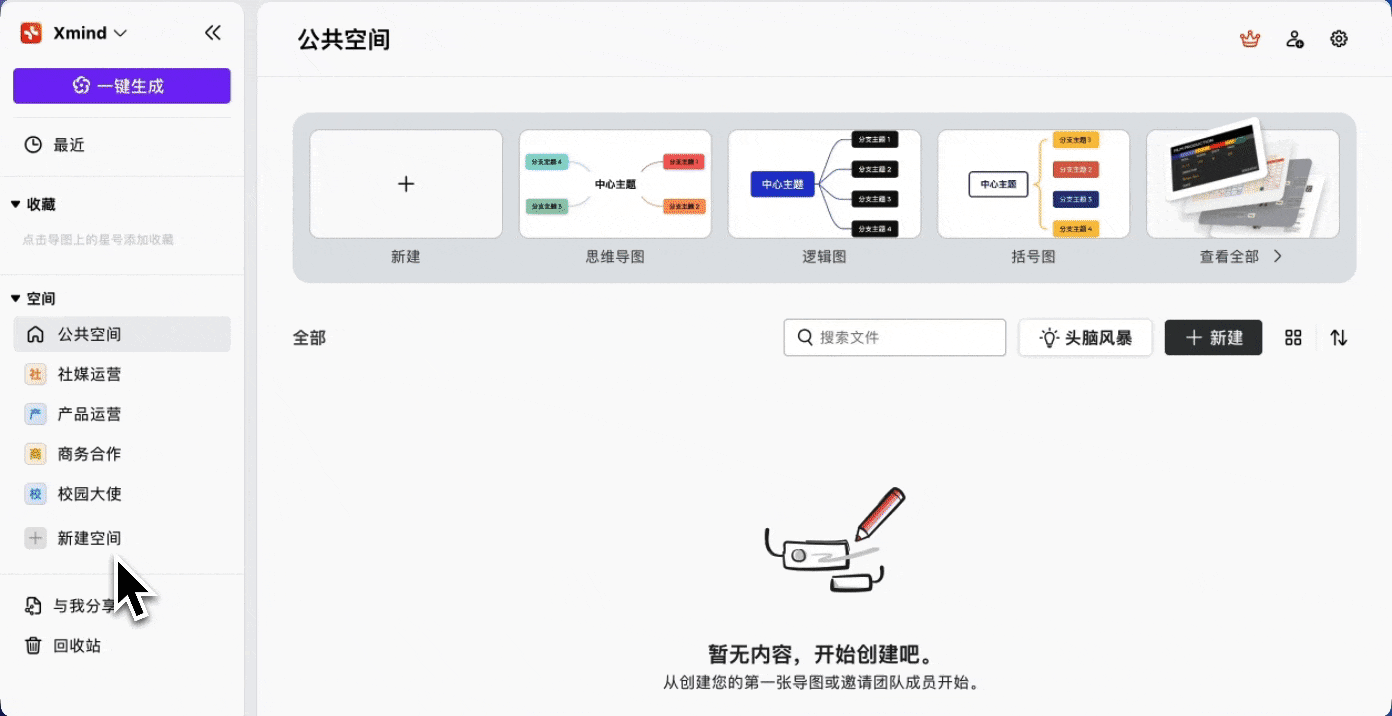 不同空间相互隔离,导图文件仅该空间成员可见