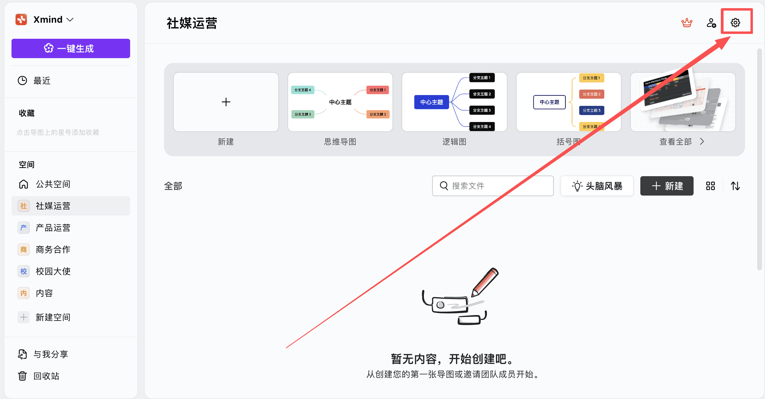 1、点击空间右上角的设置图标